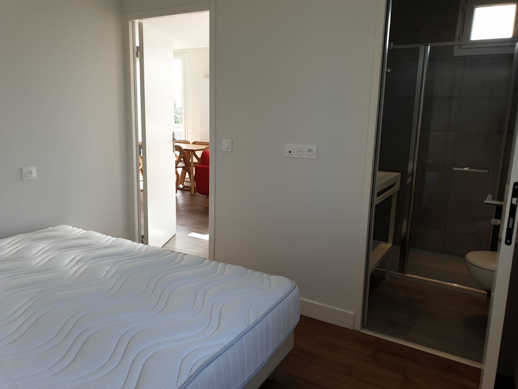 OPTIMO à louer à Talence, dans petite résidence sécurisée, au calme, de standing, en coliving, avec parking, commerces et tram à proximité immédiate.