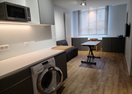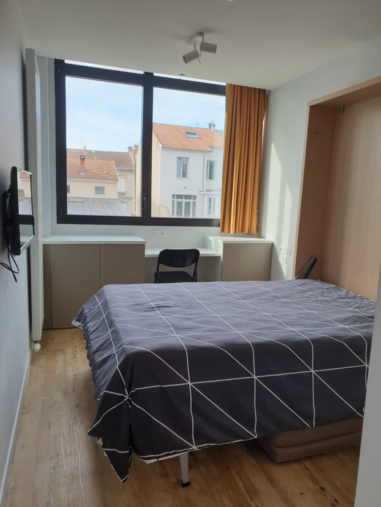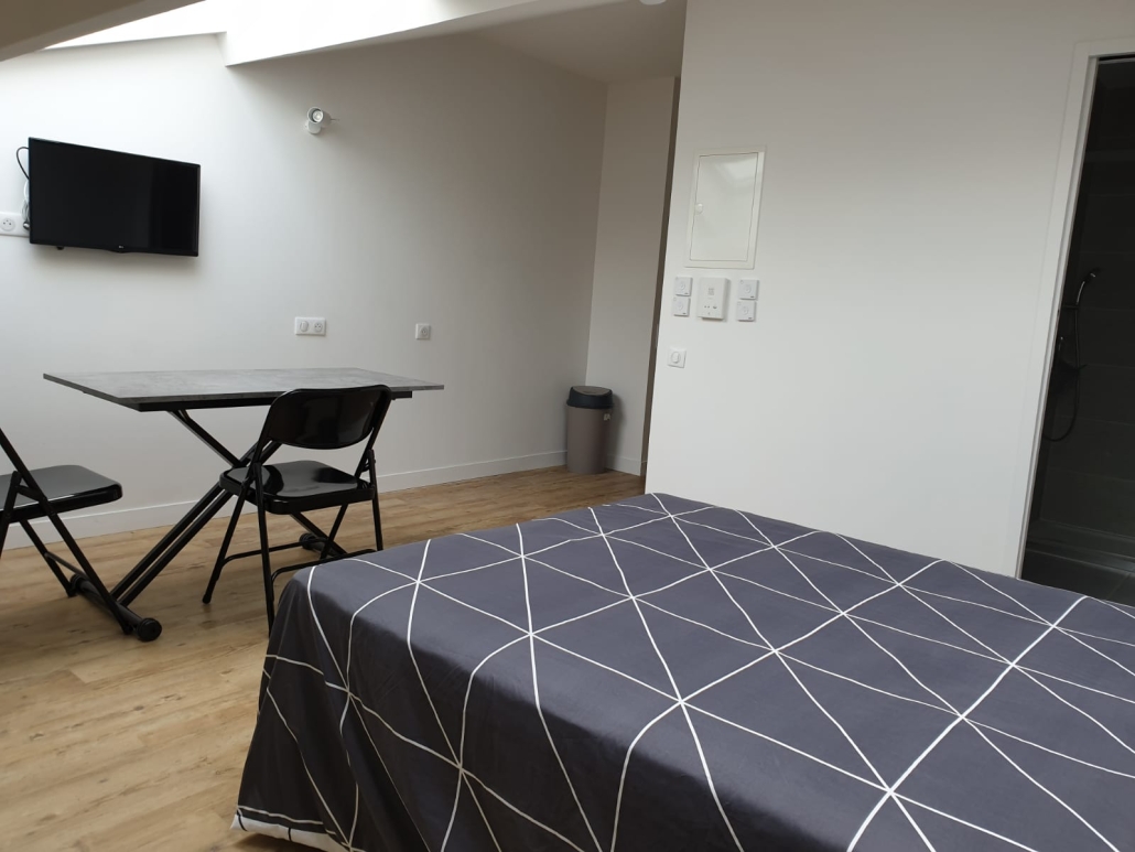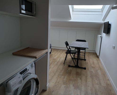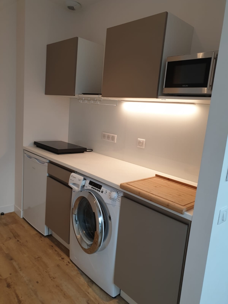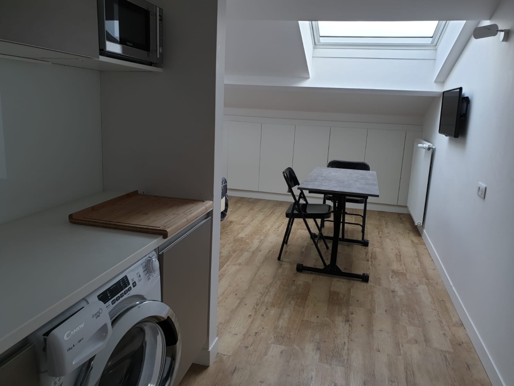 Votre pied à terre urbain meublé de 25M2, tout équipé sur mesure, vous assure autonomie et bien être, avec une belle vue dégagée, sur les jardins au Sud.