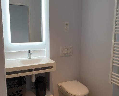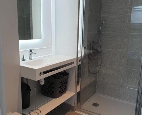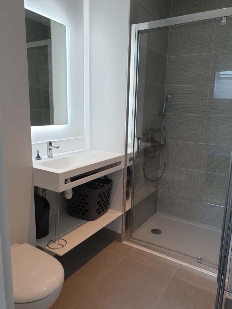Et bien sûr, votre salle d’eau, avec sa belle cabine de douche, son WC suspendu et son meuble vasque, vous garantissent hygiène et bien être.