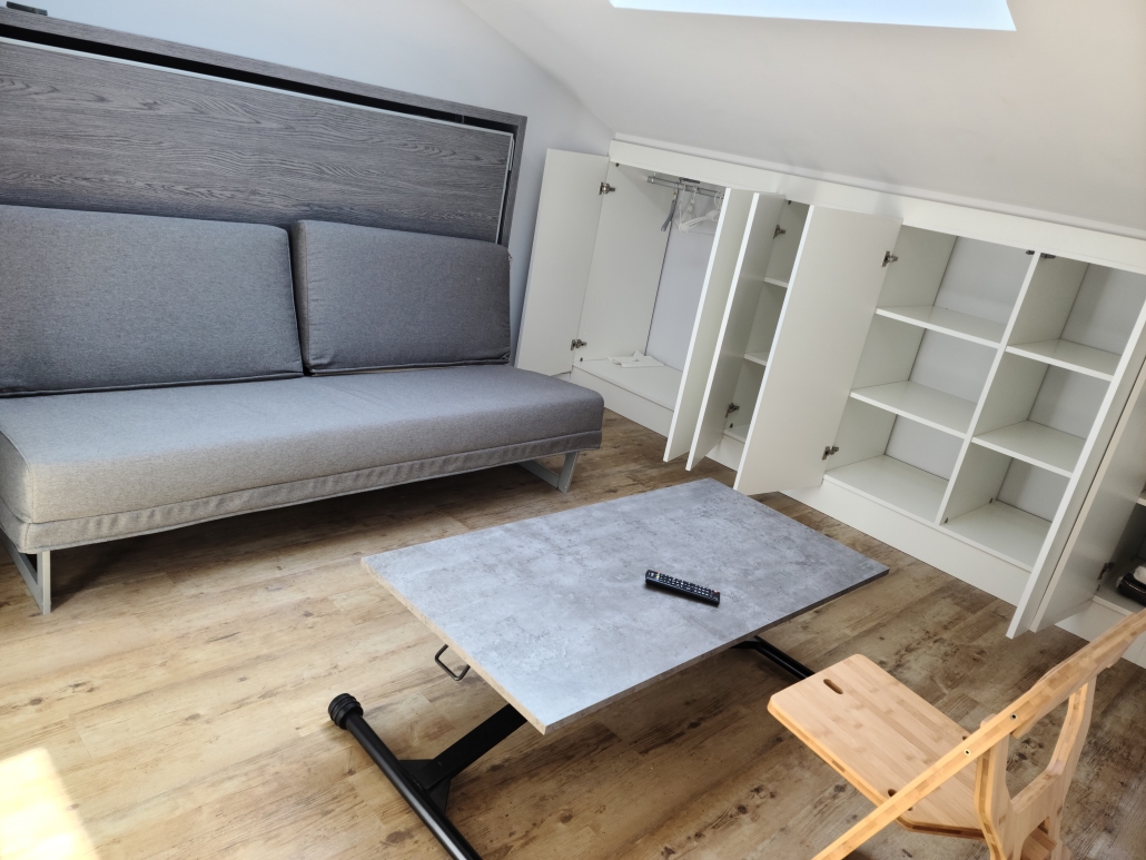 Le jour, votre SOLO se présente comme un salon/bureau, pour travailler ou vous détendre.